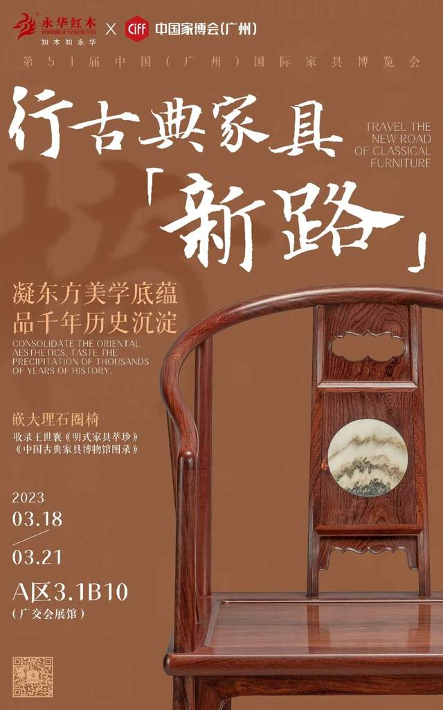永华家具(展位:A区3.1B10)将携65件套古典家具精品参加3月18日-21日举办的第51届中国家博会(广州)。