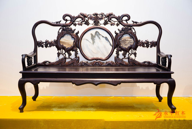 为何欢喜?一则广式家具多采用酸枝、黄花梨、紫檀等一色木材,不喜参杂其它木种,纹理自然美观,佳木还具养生功效;二则随着高端红木原材濒临灭绝,《濒危野生动植物种国际贸易公约》的颁布与执行,红木家具的收藏价值也水涨船高。这对于红木爱好者,可谓是件大喜事。为何沉醉?广式家具融合了中国传统文化与西洋文化,将传统吉祥纹饰、神话典故、西洋流行艺术风格与纹饰雕饰于红木家具上,沿用中国传统雕刻技艺如线雕、浮雕、圆雕、透雕等,画面效果栩栩如生,让人如痴如醉。红木家具也正因其精湛工艺、精美造型和独特意韵,艺术价值倍增。永华红木作为广式家具的传承者,继承与发扬了广式家具的独特艺术美。在永华艺术馆,来访宾客们还可见一些经典的广式家具款式,雍容华贵,庄重典雅。