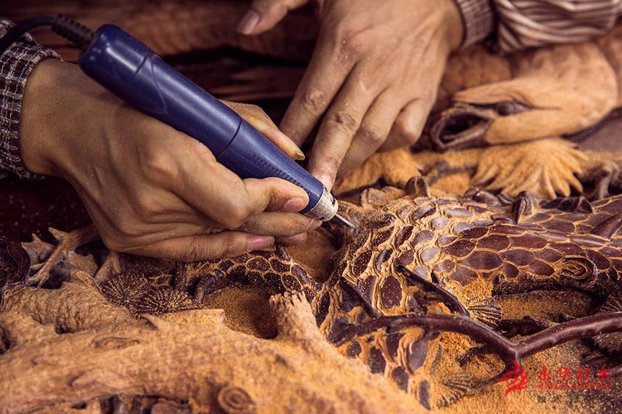 一般而言,一幅雕刻作品需要三十几把不同的雕刀结合使用才能创作出栩栩如生的图案,至于图案的美感及艺术水准,全在于雕刻工匠的技术功底。