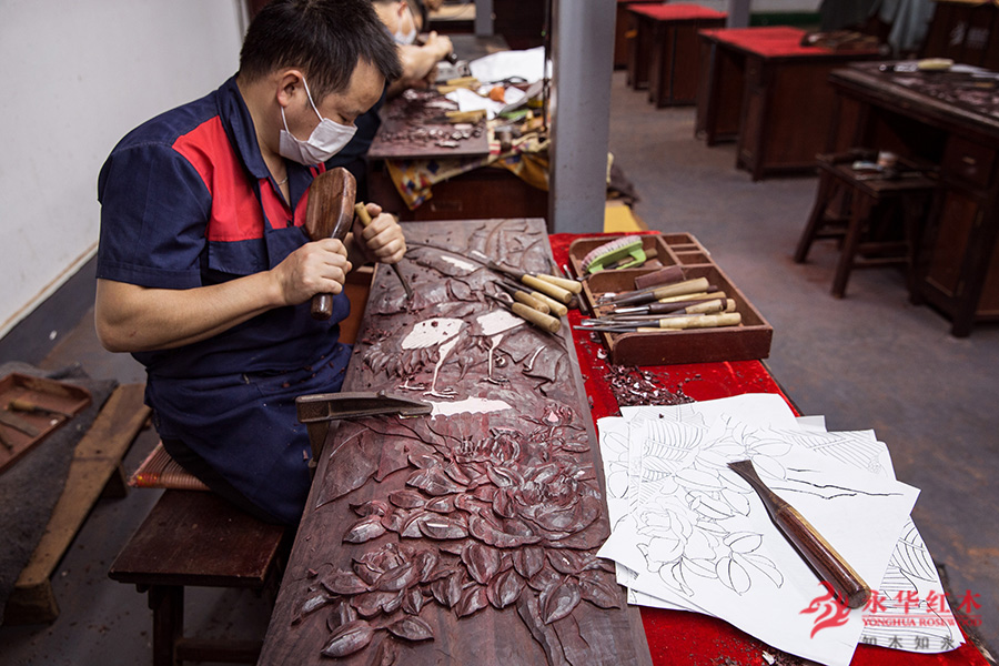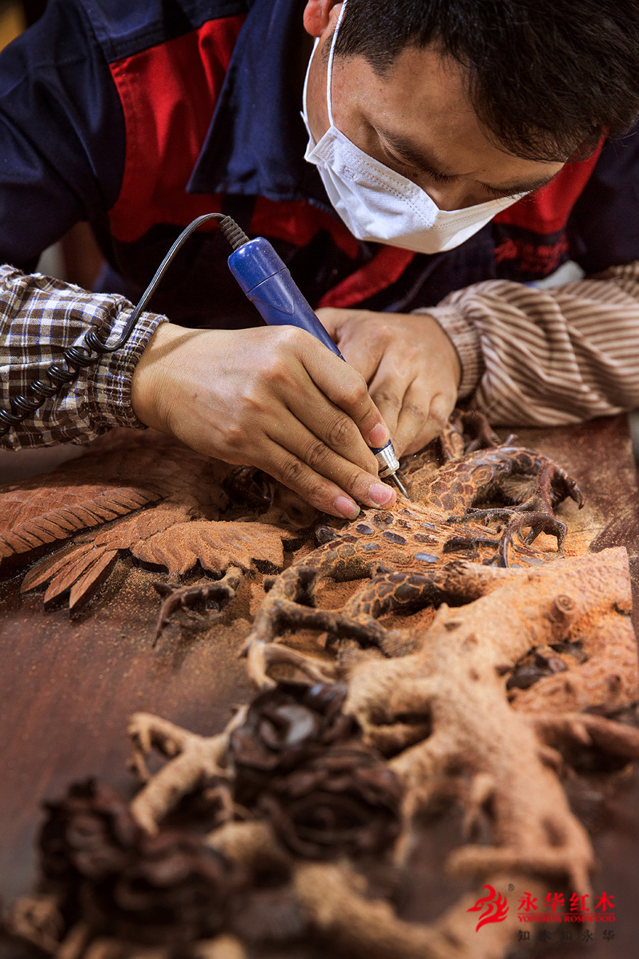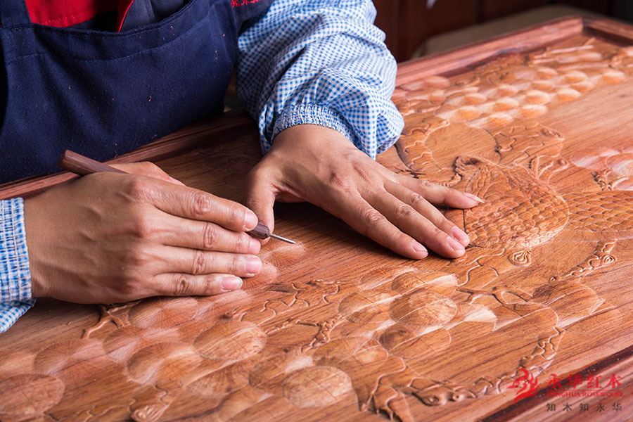 雕刻对于中国古典红木家具而言,无论是气质雕琢还是韵味装饰,同样具有内外兼修之功力,交相辉映之气质。因此,红木家具手工雕刻俨然也是一门“中国功夫”。