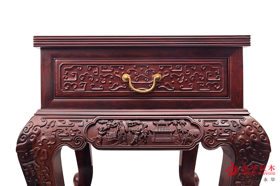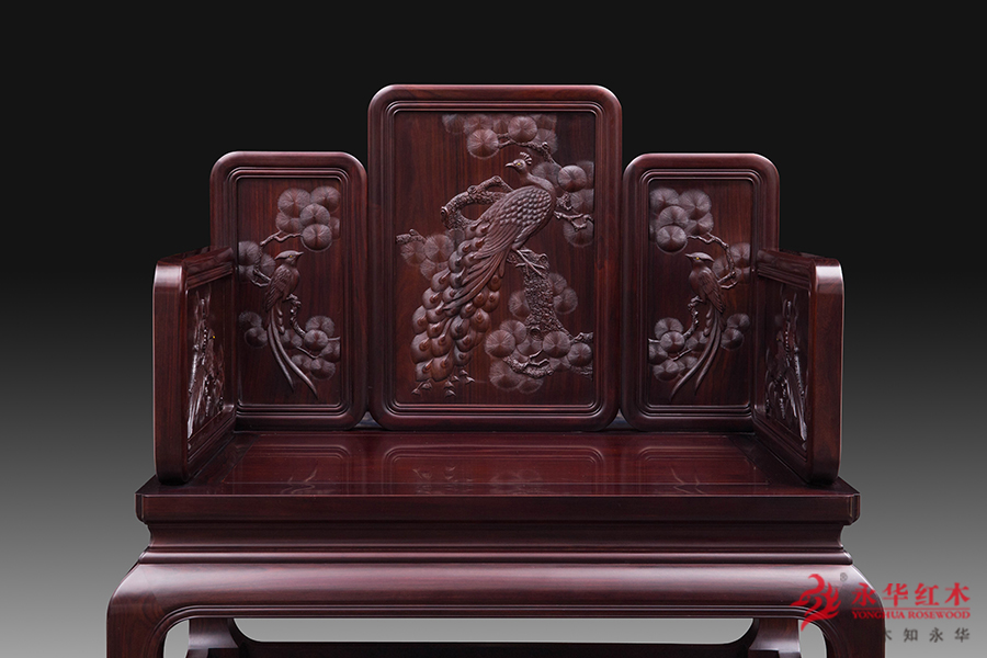 在古典红木家具的制作工艺中,雕刻在装饰手法中占有重要地位,论其技法可分为:浮雕、透雕、浮雕与透雕相结合、圆雕等四种。其中,以浮雕手法使用最多,同为浮雕,又会因花纹的突出多少、由浅至高而分多种。