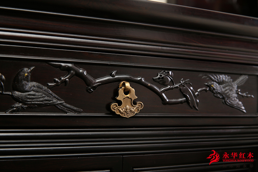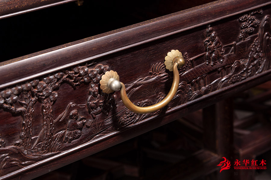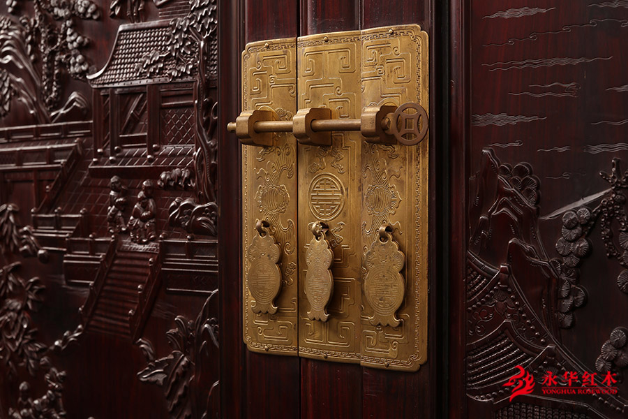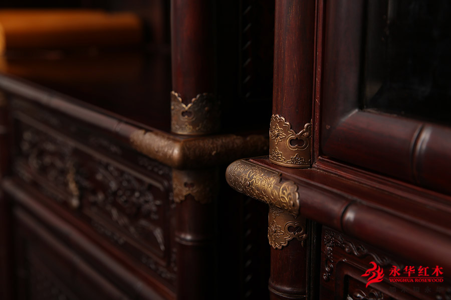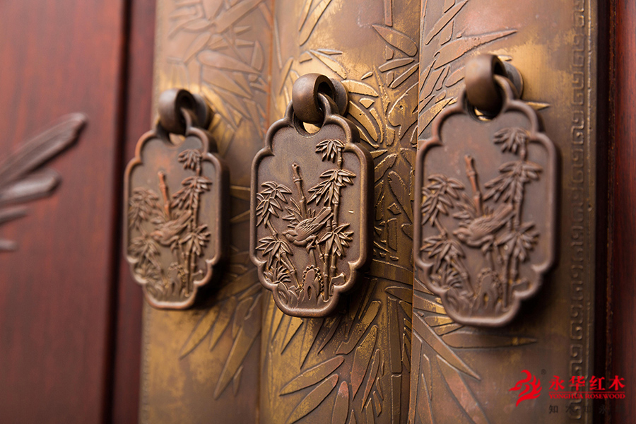 其实,红木家具上的铜活不仅是一种装饰,更是保证家具安全牢固的一个重要部件,因此铜件做得是否牢固,是考量铜活儿好坏的一个重要指标。铜件不紧密结实,红木家具就无法开拉、关合,如抽屉的拉手、柜门的合页等,容易给家具的使用带来麻烦。