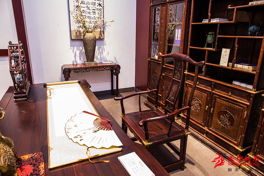 一张红木书桌,二人对坐,伴她读书添香,抛却烦恼,置身雅韵之中,重归宁静,相伴漫长一生。