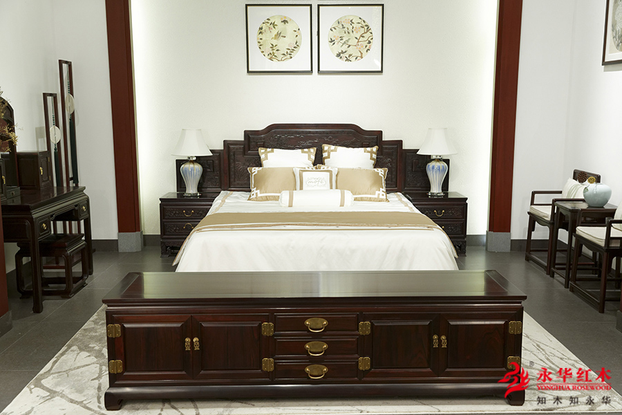 一张红木床,枕畔生清风,梦里闻木香,体会一天比一天更浓厚的爱意,感受爱情的温存。