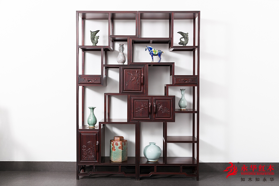 博古架下部分有较大的储物空间,具实用性与观赏性于一体。简洁的款式,较多的现代时尚感,它将会让您的居室大放光彩。
