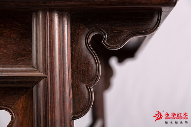 书台的点睛之笔在于案面边抹与腿足均有柔美的梅花线点缀,尽显明代文人的审美情结,明式家具的线脚之美尽收眼底。顿时使书台整体饱满,富有立体感。