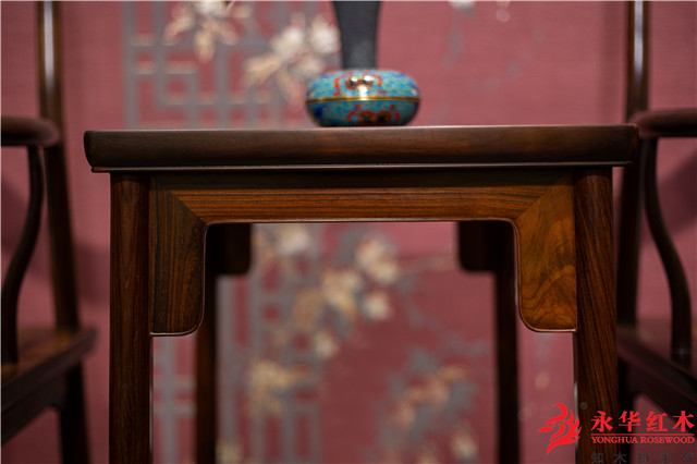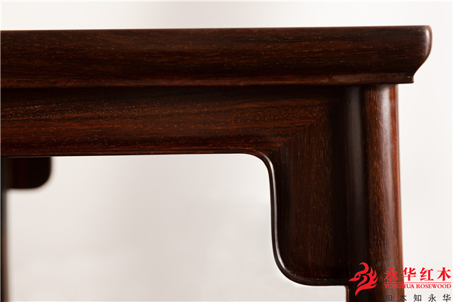 一是横向较长的牙条,如在桌面与腿的交角处使用的牙子,既起到了加固的作用,又使整件作品线条更加自然流畅。