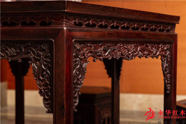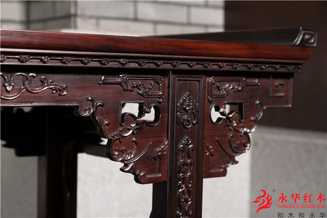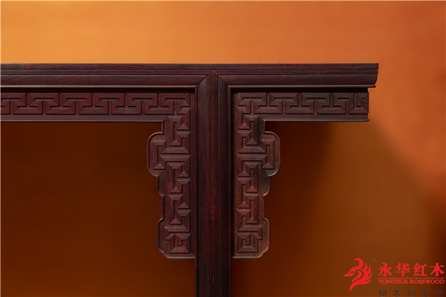 二是一种施在角上的短小花牙叫做牙头,一般有云纹、棂格、卷草、龙凤等几种图案,如在整体上都比较方正平整的琴桌,其台面与腿子的交角处使用棂格牙子或者卷草牙子,那么家具会因此变得温婉而秀美,但是整体风格上又延续了简洁内敛而丝毫不显夸张。