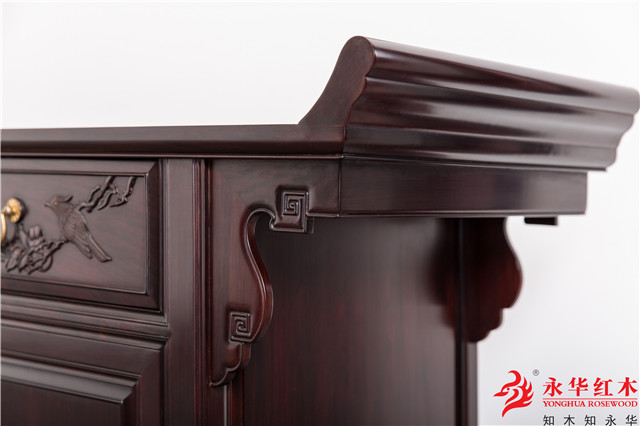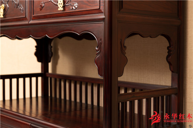 如果在牙条上刻上简单的卷草浮雕,既不会破坏整体的大气,又会使家具多了一分轻盈、秀美。