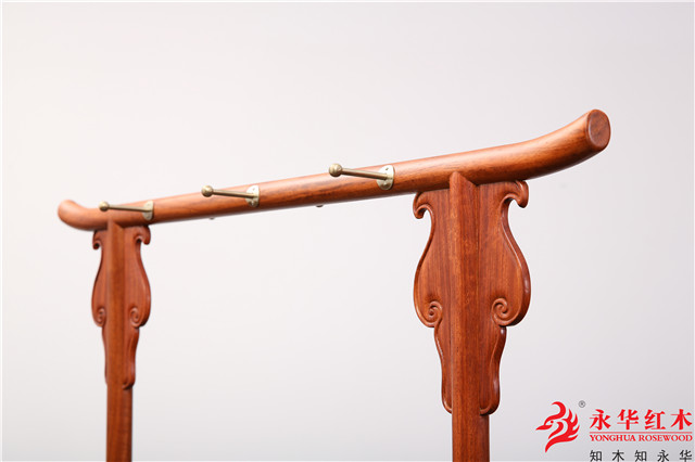 三是用在衣架、盆架上部搭脑两侧的挂牙,图案极其丰富精美,龙纹、卷草纹、灵芝纹、云纹等各种美丽的图案都可以大胆地使用,牙子在这里展示了极致的美丽。