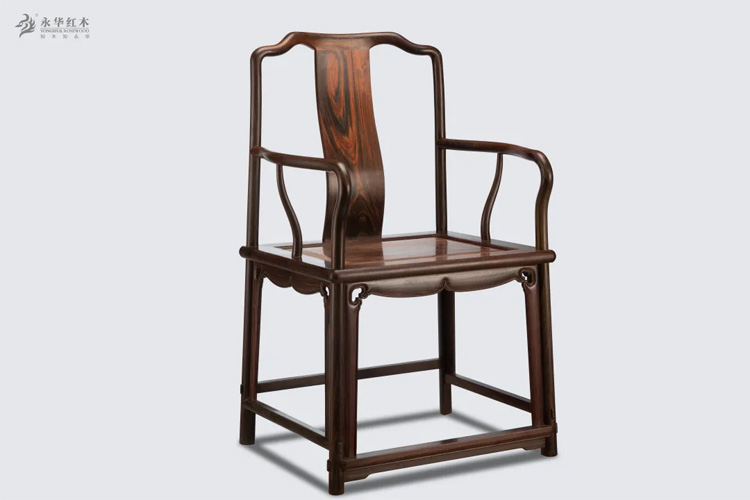 官帽椅因像古代官吏所戴的帽子而得名。分为“四出头”(搭脑和扶手都出头)和“南官帽”(搭脑和扶手无一出头)。官帽椅四平八稳,视觉凝重,堪称明清椅类的代表。