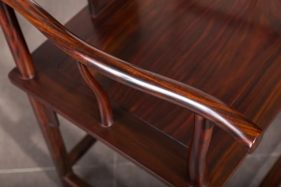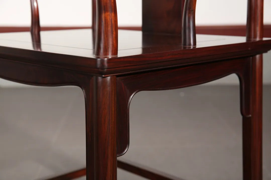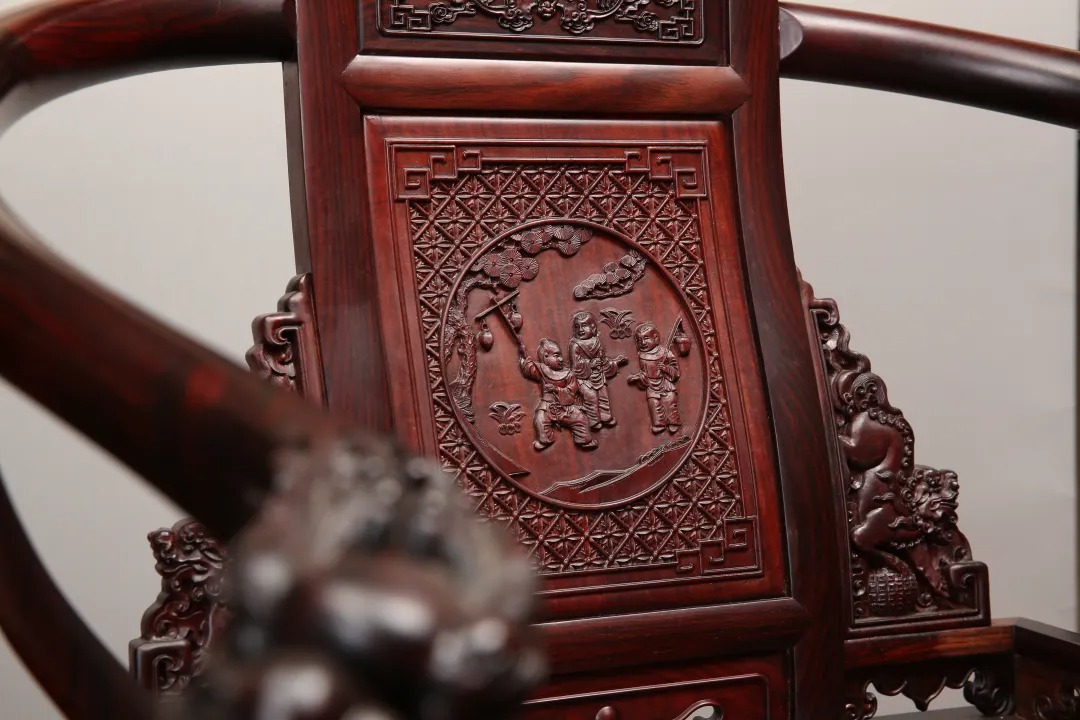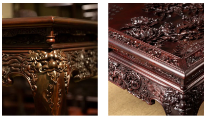 大红酸枝家具继承了我国传统的古典家具的灵魂——榫卯结构。榫卯结构在明代的黄花梨家具上已经出类拔萃;清中期的紫檀家具把榫卯结构的特色体现得更加完美;在清中期以后的大红酸枝家具,在继承的基础上更是得到了极大的创新。