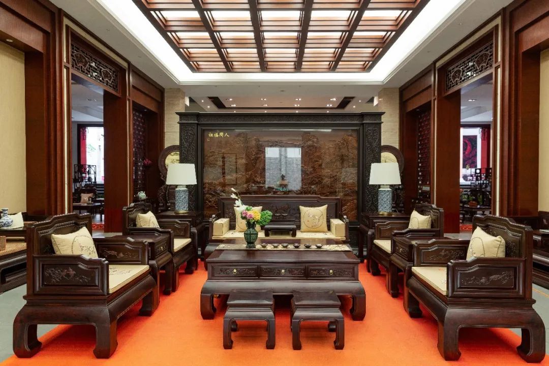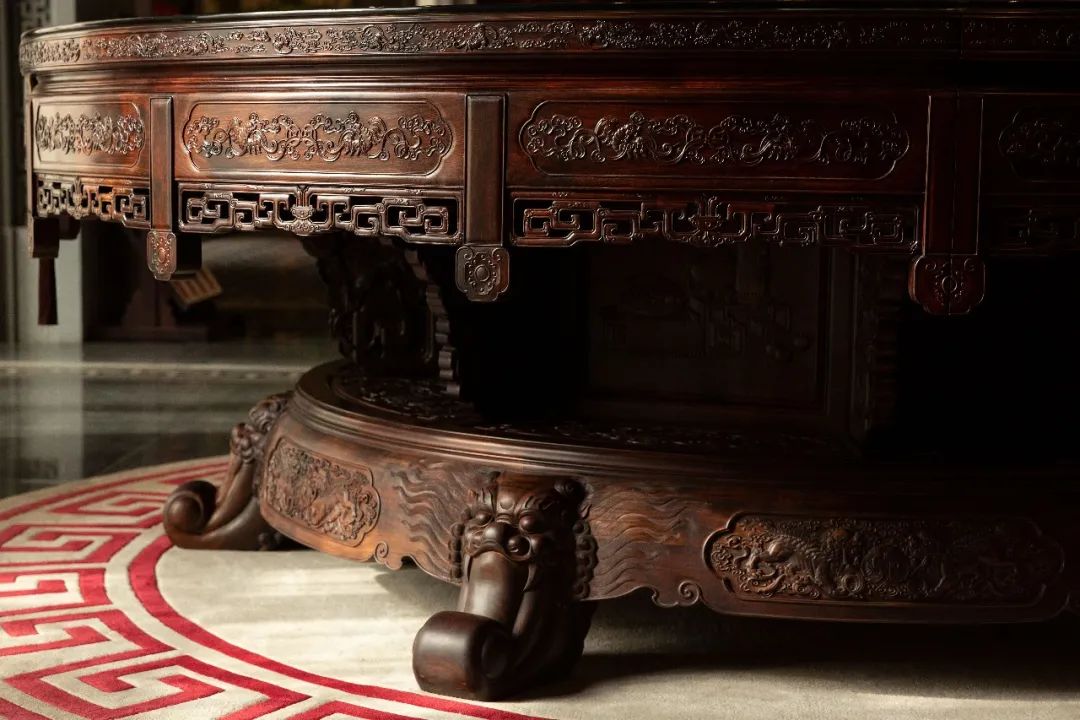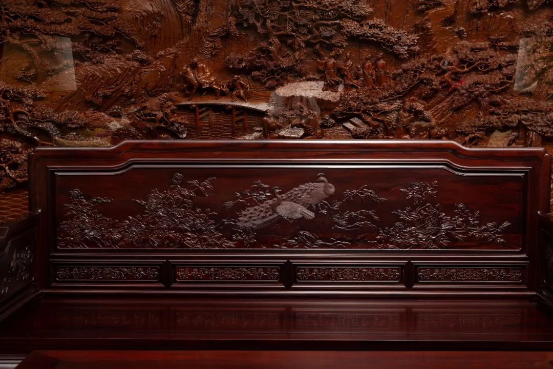 红木与雕刻,无论是象征美好的孔雀,还是文人挚爱的梅兰竹菊,那些看似无题实则有意的雕刻,亦透露出一种空灵的意境和抽象的意识,平静从容地传达出人与自然的和谐之美。