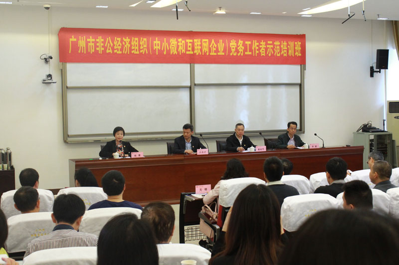 4月17日,广州市非公经济组织(中小微和互联网企业)党务工作者示范培训班开班,上午在社会主义学院举行了开训动员,市非公党委书记熊鹰主持了动员大会,市委统战部常务副部长、市工商联党组书记董延军和市委组织部吕忠才副巡视员到会指导,董延军同志作了开班动员。