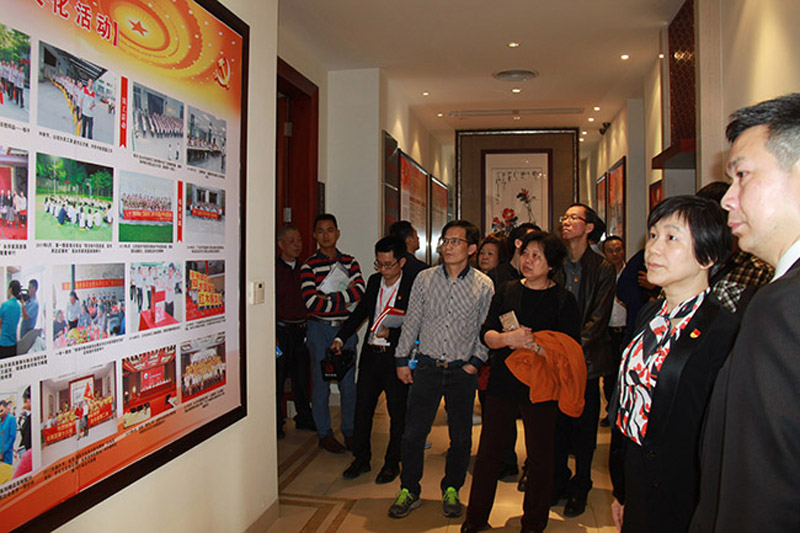 永华家具党支部书记邱志坤、组织委员陈玲及宣传委员张观泉等支部成员带领培训班党员参观永华家具党支部党建文化长廊,详细讲解永华家具党支部党建工作情况;走进技术研发部党员示范岗,了解党员同志带领团队在家具研发创新方面的工作情况及获得的殊荣;随后移步到企业文化宣传栏,了解支部系列活动的情况;参观了党群活动室,室内的书法区、象棋区、阅读区、谈心区等场所