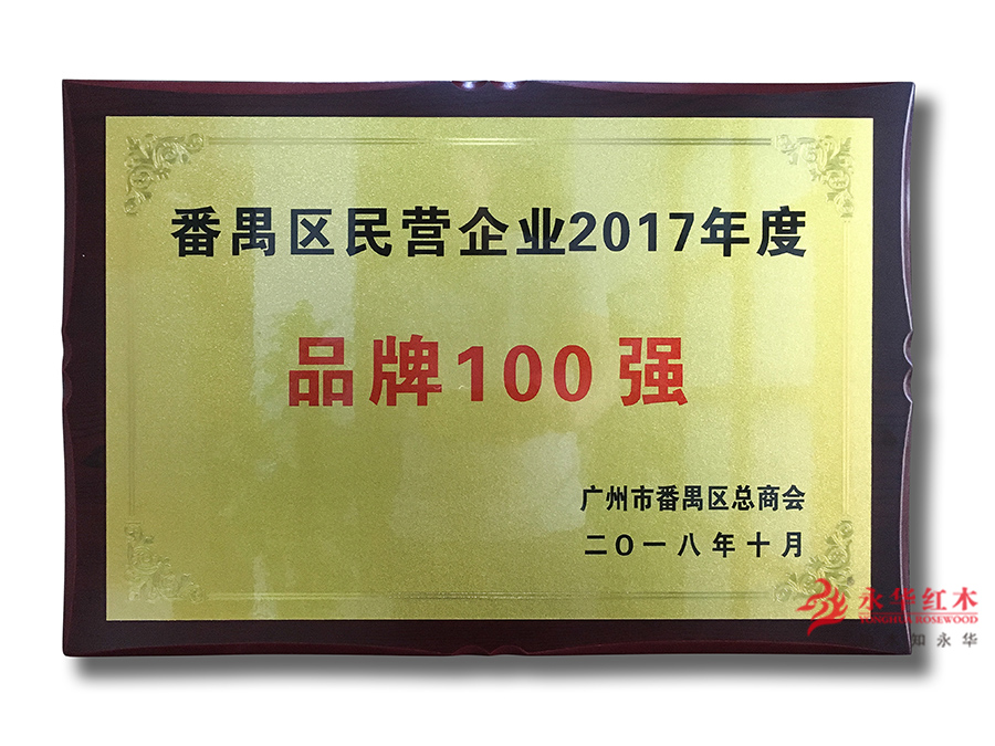 树行业发展标杆,铸百年文化品牌。永华红木入选“番禺区民营企业2017年度品牌100强”,是政府对永华红木强大的品牌实力的高度肯定。作为中国红木家具十大影响力品牌之一,永华红木实至名归。
