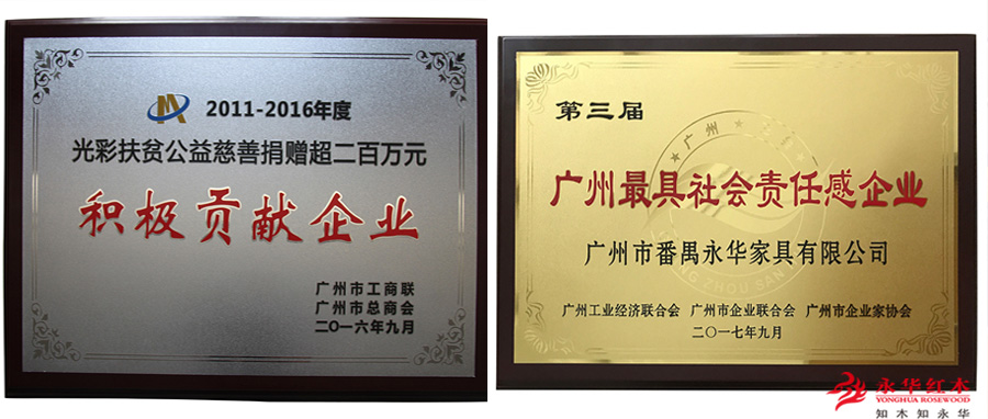 此次荣获“番禺区2015—2017年度光彩事业突出贡献民营企业”称号,也是政府对永华红木勇担社会责任的充分认可,也充分肯定了永华红木在公益慈善事业方面作出的积极贡献。