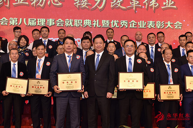 会上举行了第八届理事会、监事会就职仪式,区委书记何汝诚、区人大常委会主任李广杭等区领导为新一届理事会、监事会颁牌。永华红木当选为番禺区厂商会第八届理事会副主席单位。