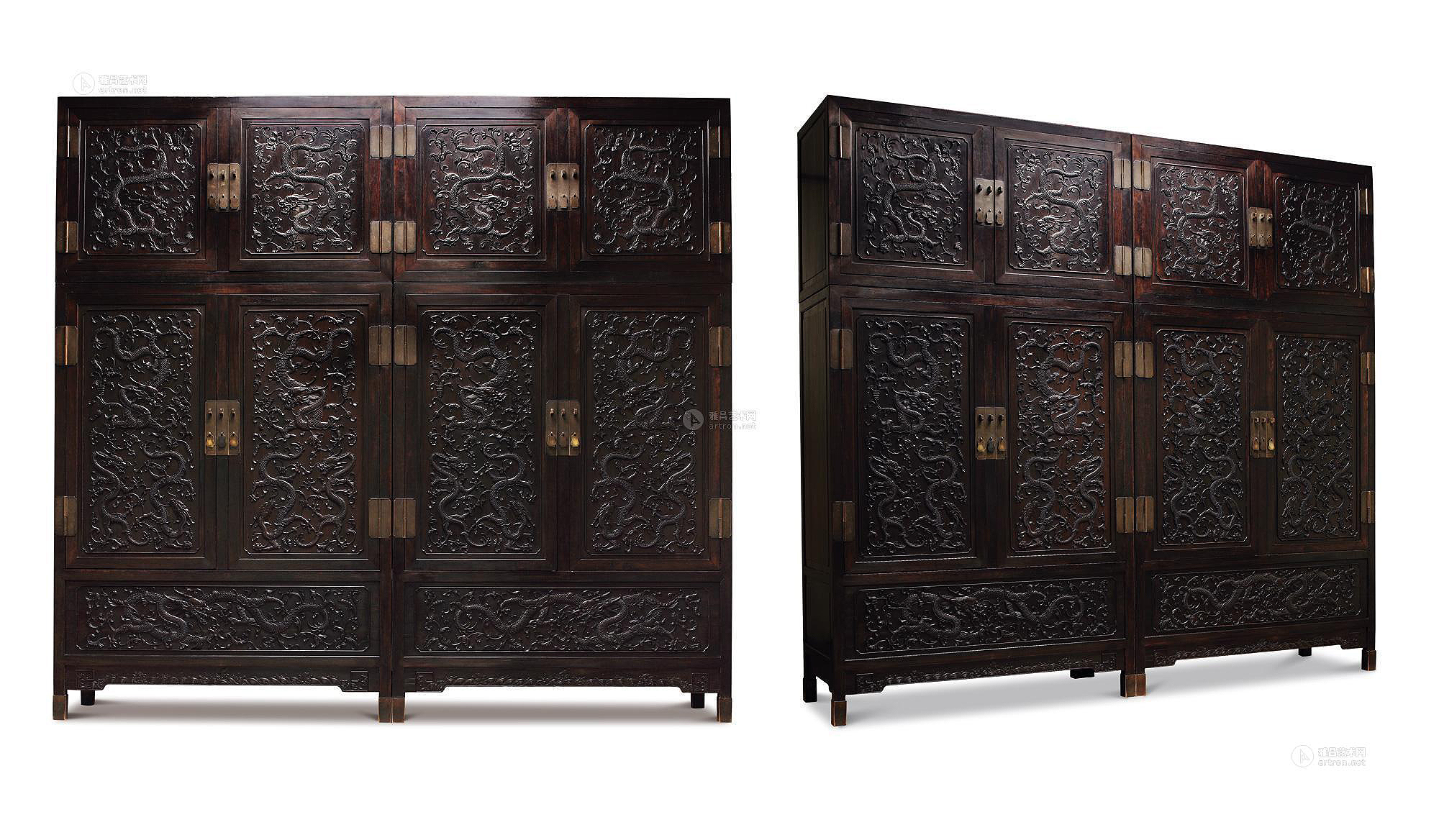专场:清乾隆紫檀雕九龙纹大四件柜