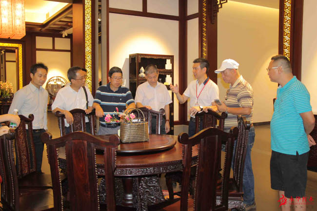 在邱副总的带领下,来宾们参观了永华红木代表性建筑—永华艺术馆,馆内上百件红木艺术家具,优雅并济,奢华合度。漫步其中,古典的美丽穿越时空,婉如走进一座充满复古美感的神秘殿堂,惊喜纷呈,如诗如画,如痴如醉。
