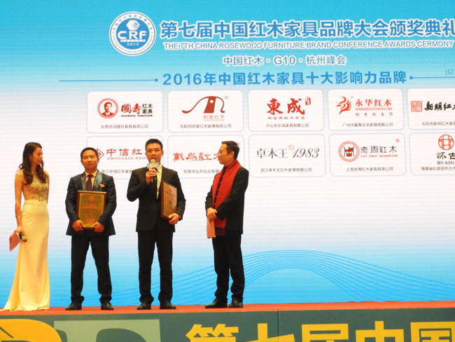 一、永华红木荣获“2016年中国红木家具十大影响力品牌”奖