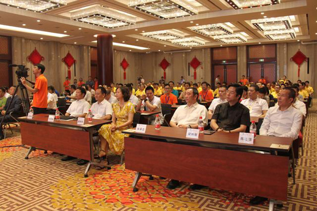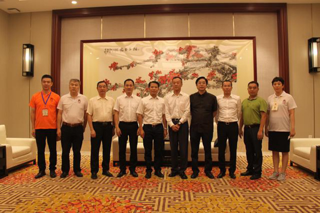 广州市番禺区委常委、区委办主任 吴惠垣(左五),广州市番禺区石碁镇党委副书记、镇长 方宝城(左四),广州市番禺区石碁镇党委委员、副镇长 许兆玲(右二), 中国家具协会传统专业委员会秘书长 姜恒夫(右五), 广东省家具协会副会长兼秘书长 张承志(左三),广东省家具协会副会长 李 礼(左二),广州市家具行业协会会长 梁纳新(右四), 广州市家具行业协会荣誉会长、广州市番禺永华家具有限公司董事长 陈达强(右三),广州市家具行业协会秘书长 陈允(右一),番禺石碁古典红木家具行业协会会长、 广州市番禺永华家具有限公司副总经理 邱志坤(左一)