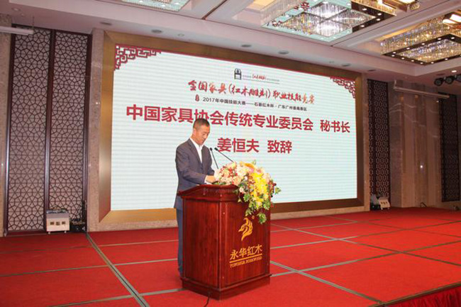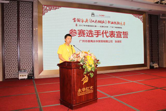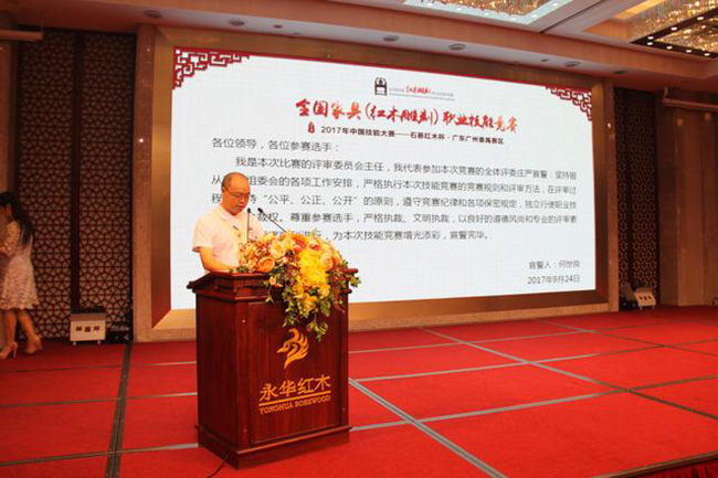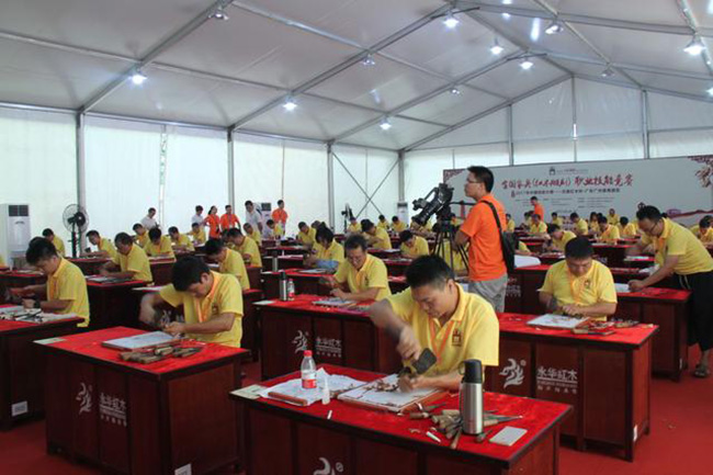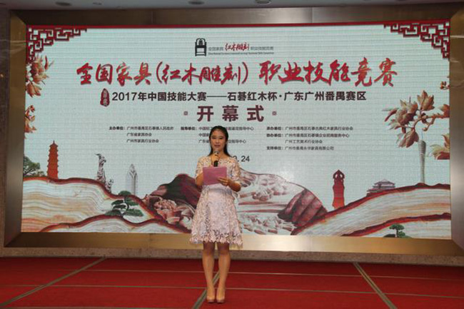 9月24日上午,在中国轻工业职业技能鉴定指导中心、中国家具协会、中国就业培训技术指导中心等部门的大力支持下,在广州市番禺区石碁镇人民政府、广东省家具协会、广州市家具行业协会的指导下,"2017年中国技能大赛——全国家具(红木雕刻)职业技能竞赛石碁红木杯·广东广州番禺赛区"在永华艺术馆拉开帷幕!此次比赛着力为广大从业人员打造互相交流、学习的平台,发现和培养红木雕刻技能人才。红木雕刻能工巧匠们将齐聚一堂,通过精湛的技艺将红木雕刻艺术淋漓尽致地展现出来,充分体现中国传统文化和大国工匠精神。