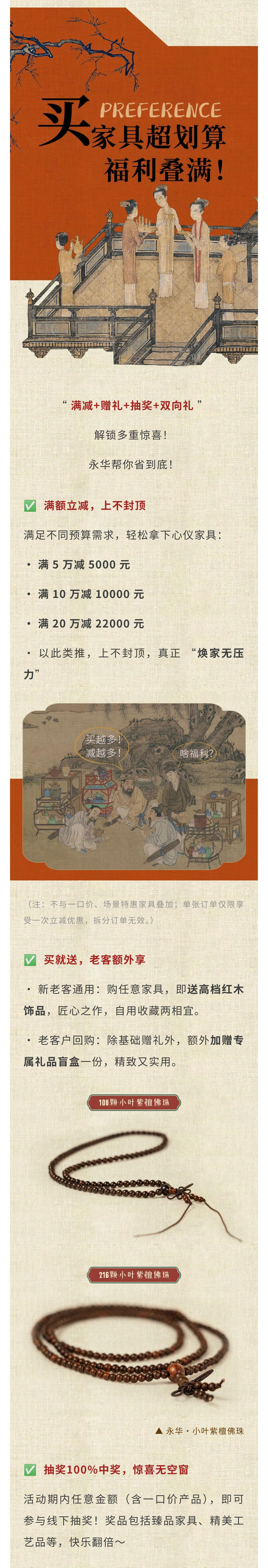 永华十一红木焕家指南:福利全解锁,从到店礼到满减优惠一篇搞定
