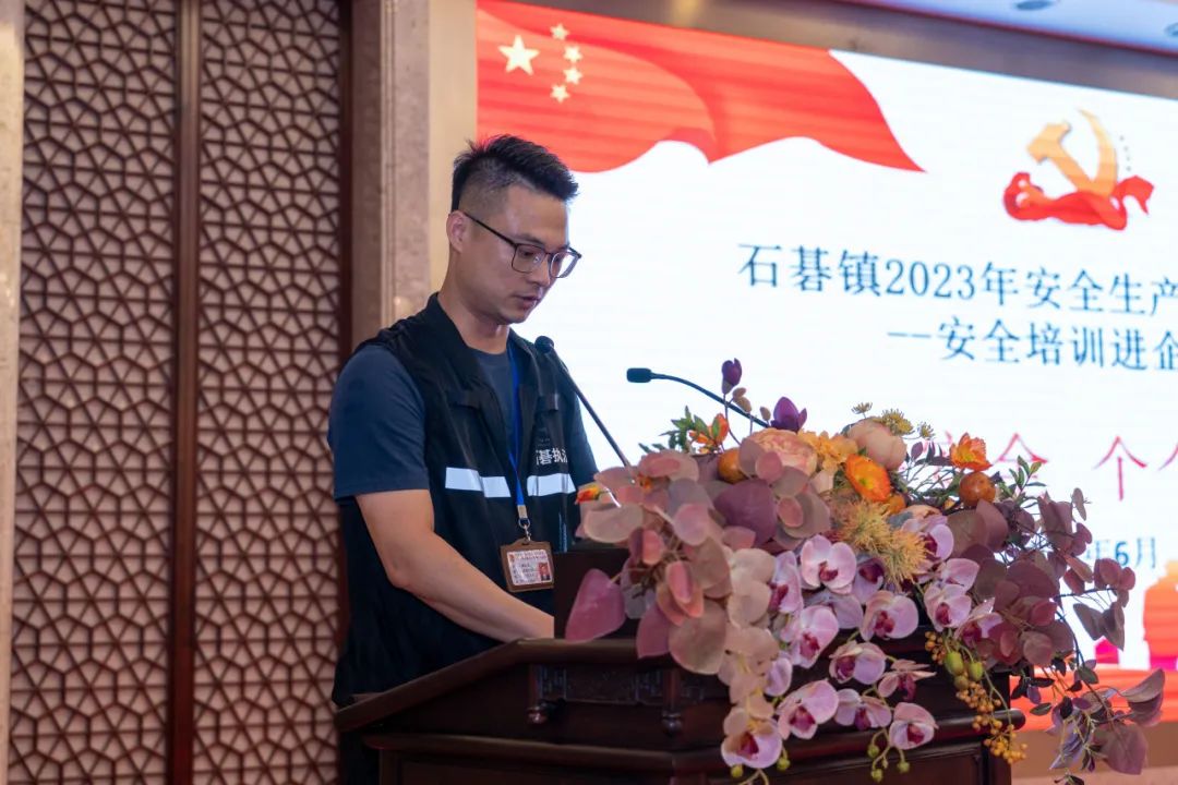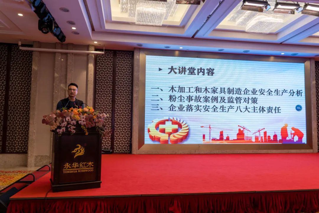 在应急救援演练结束后,我司员工接受了石碁镇2023年安全生产月大讲堂--安全培训进企业的培训课,培训内容包括:木加工和木家具制造企业安全生产分析、粉尘事故案例及监管对策等方面,由石碁镇执法办黄裕成队长讲解。