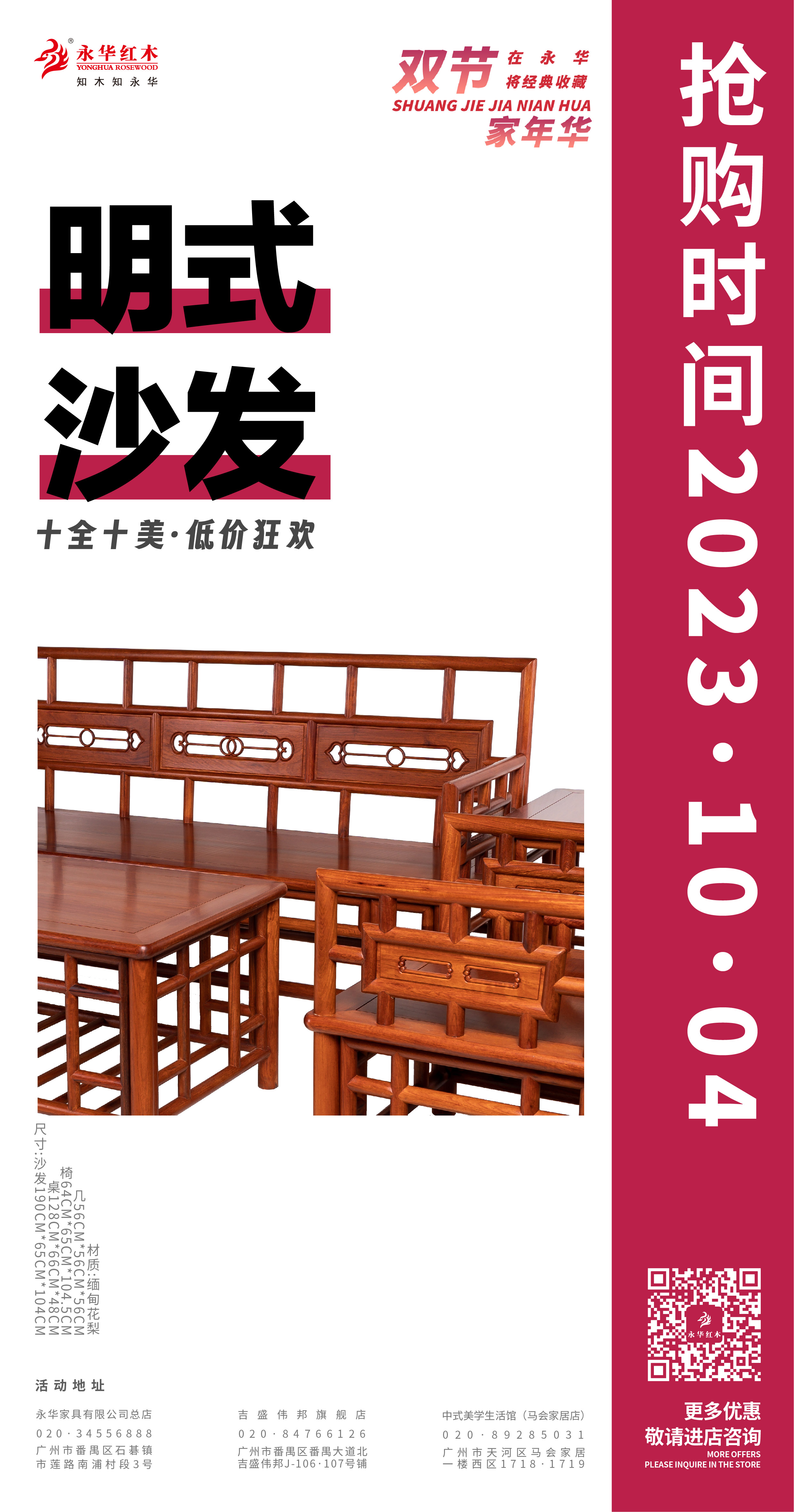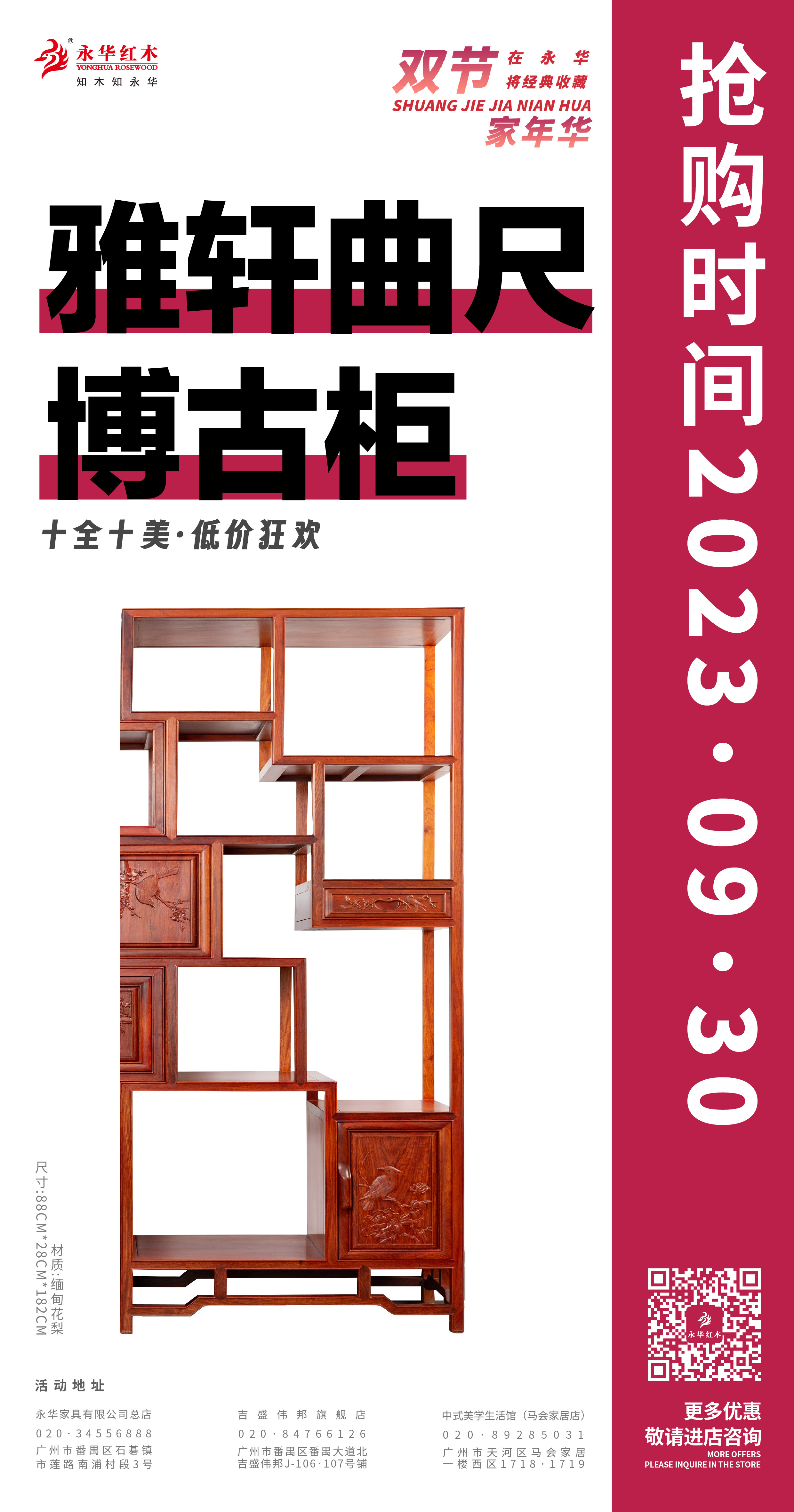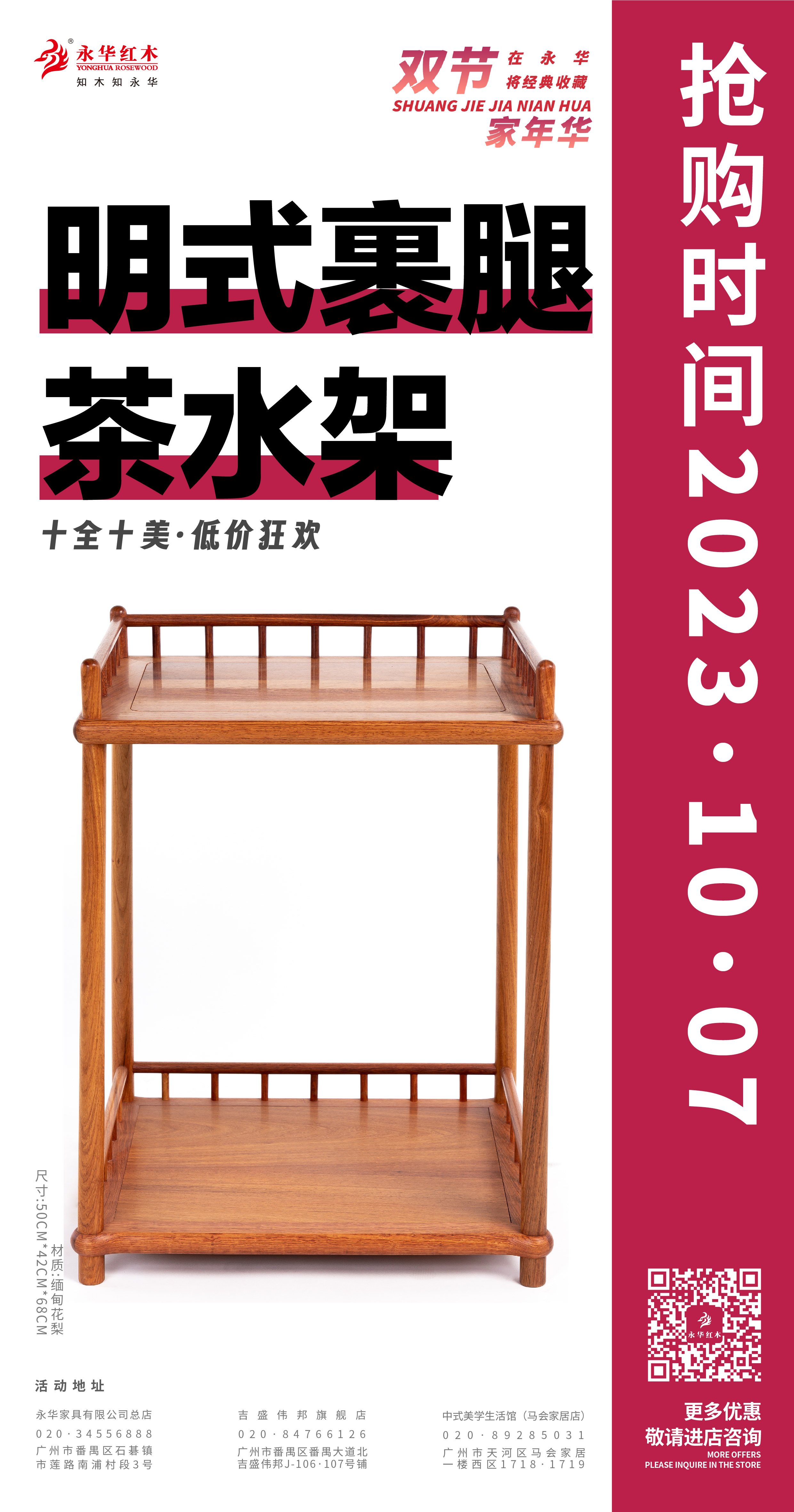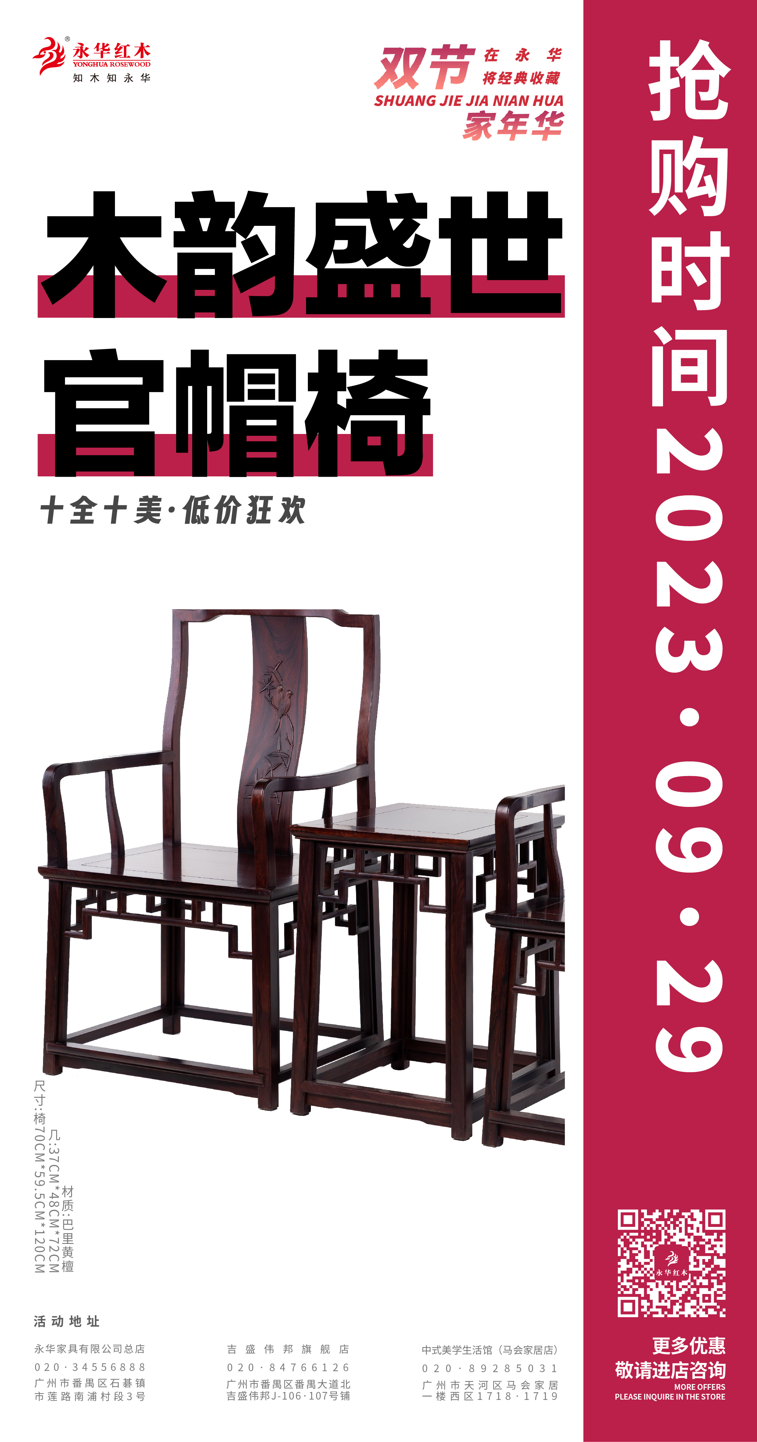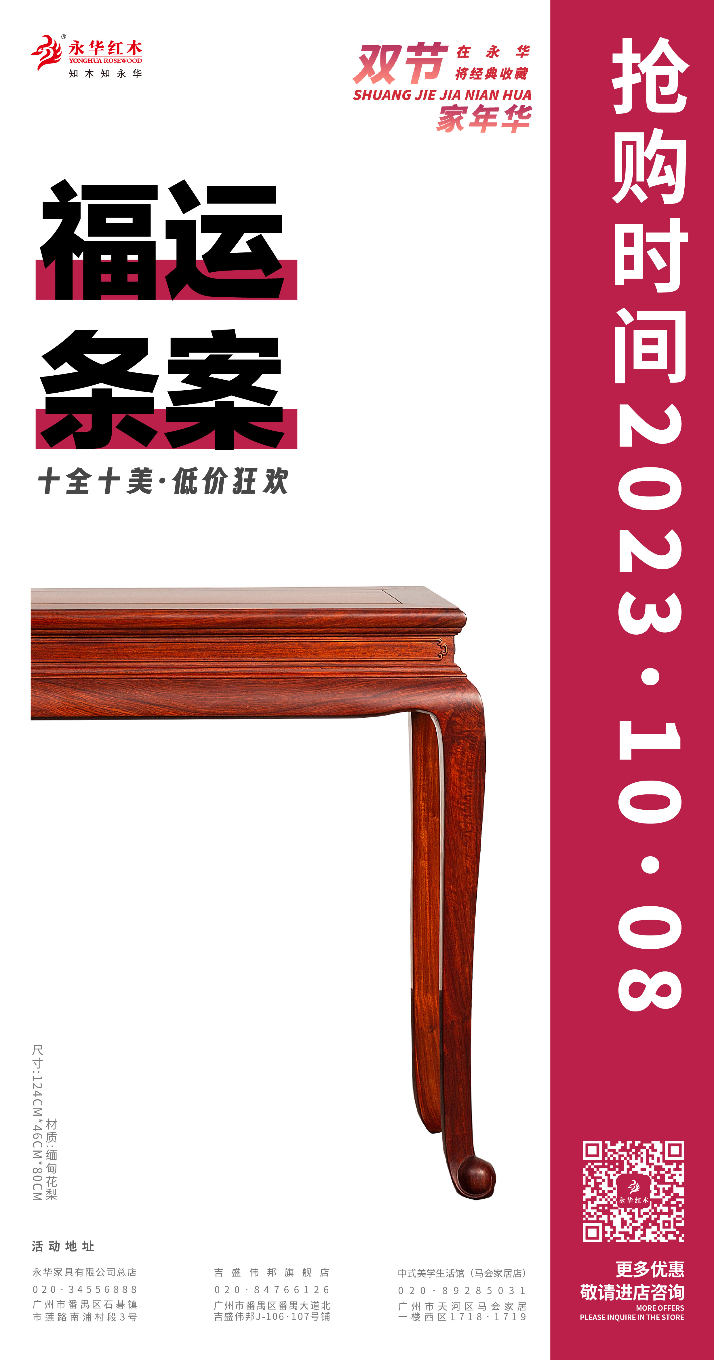 活动期间,永华家具及子品牌名广作每日各推出一款限时好价产品,总共二十件/套中式家具,涵盖入户、客厅、餐厅、卧室、书房、茶室等生活空间家具。