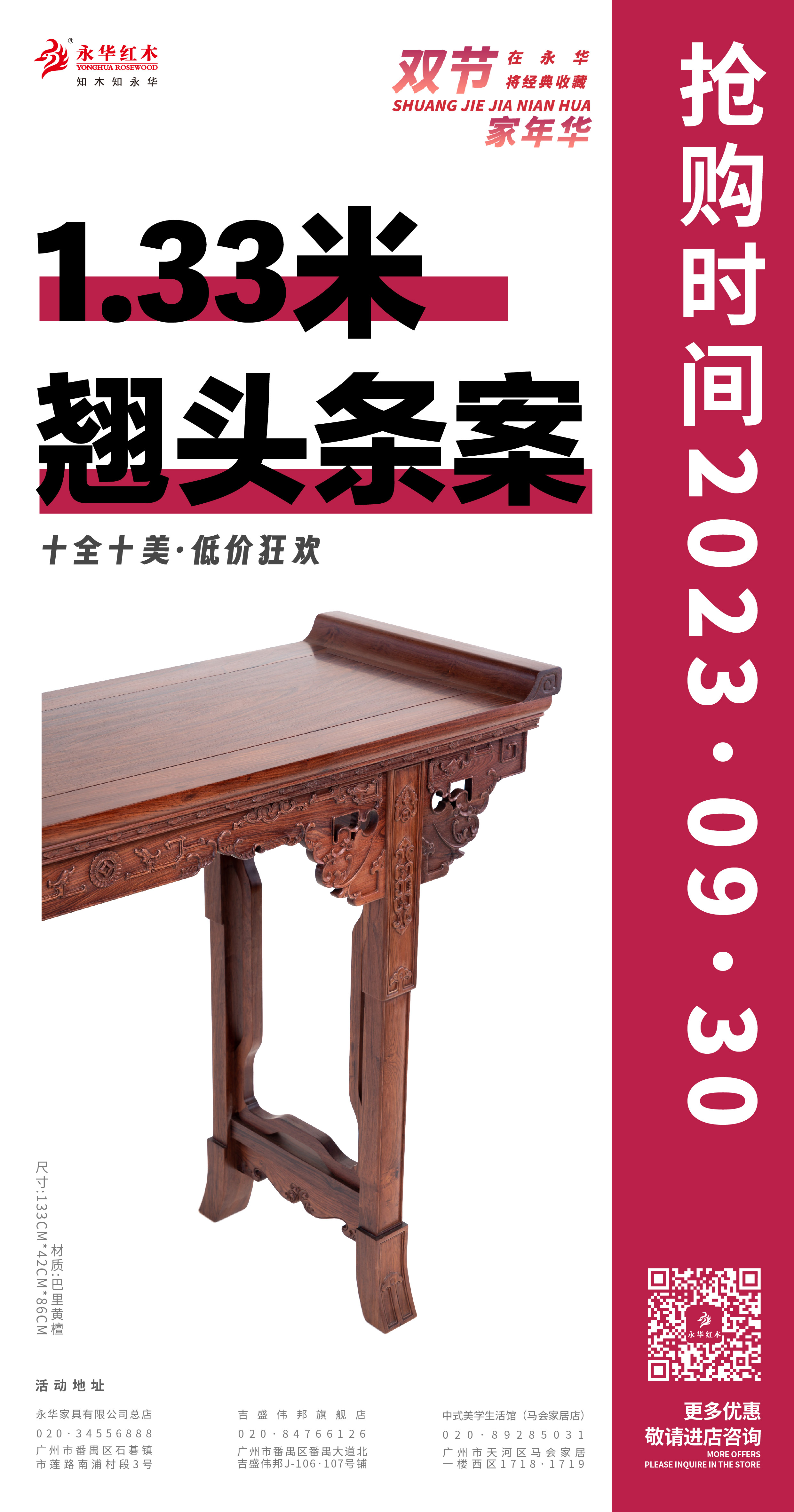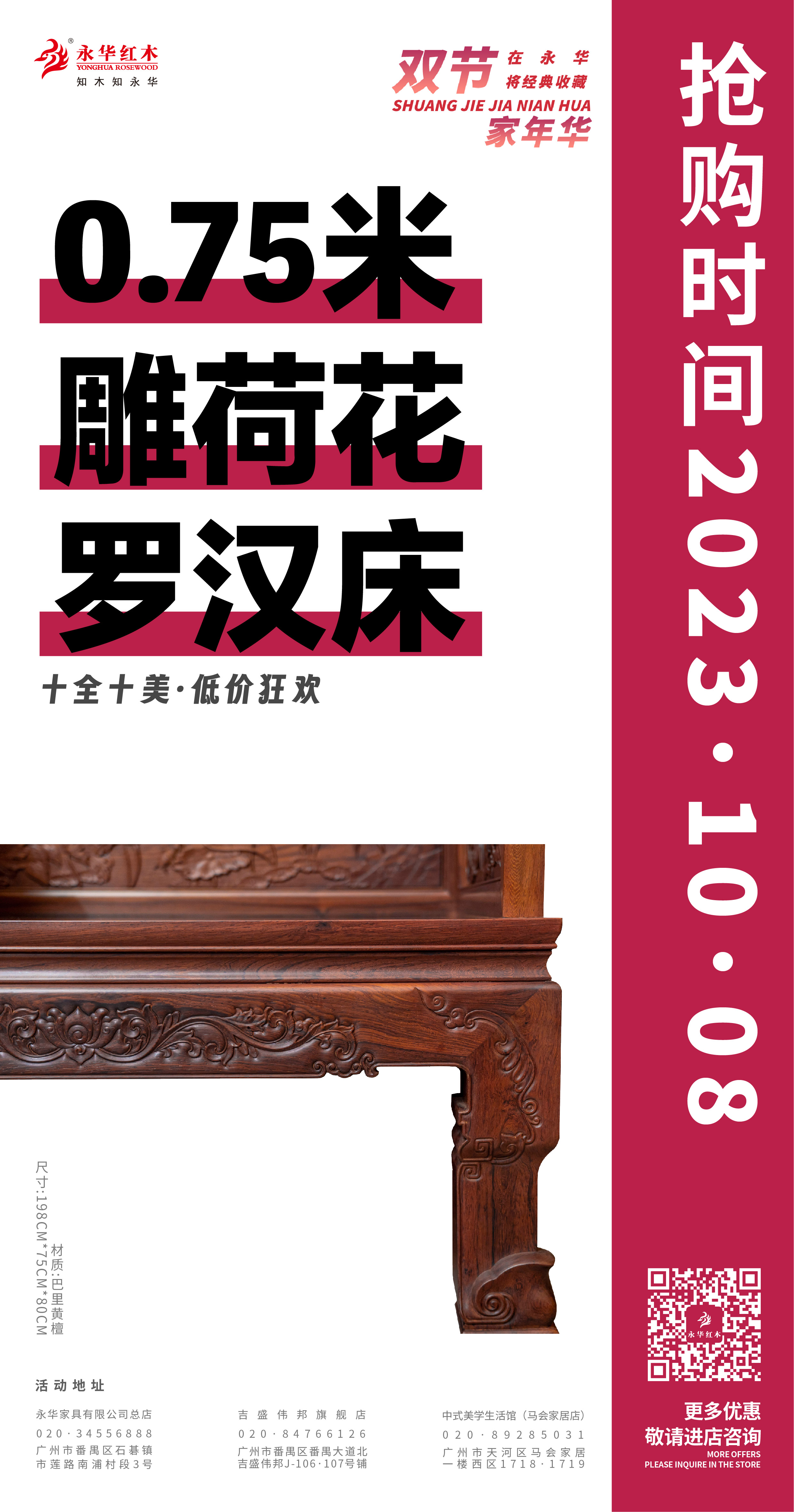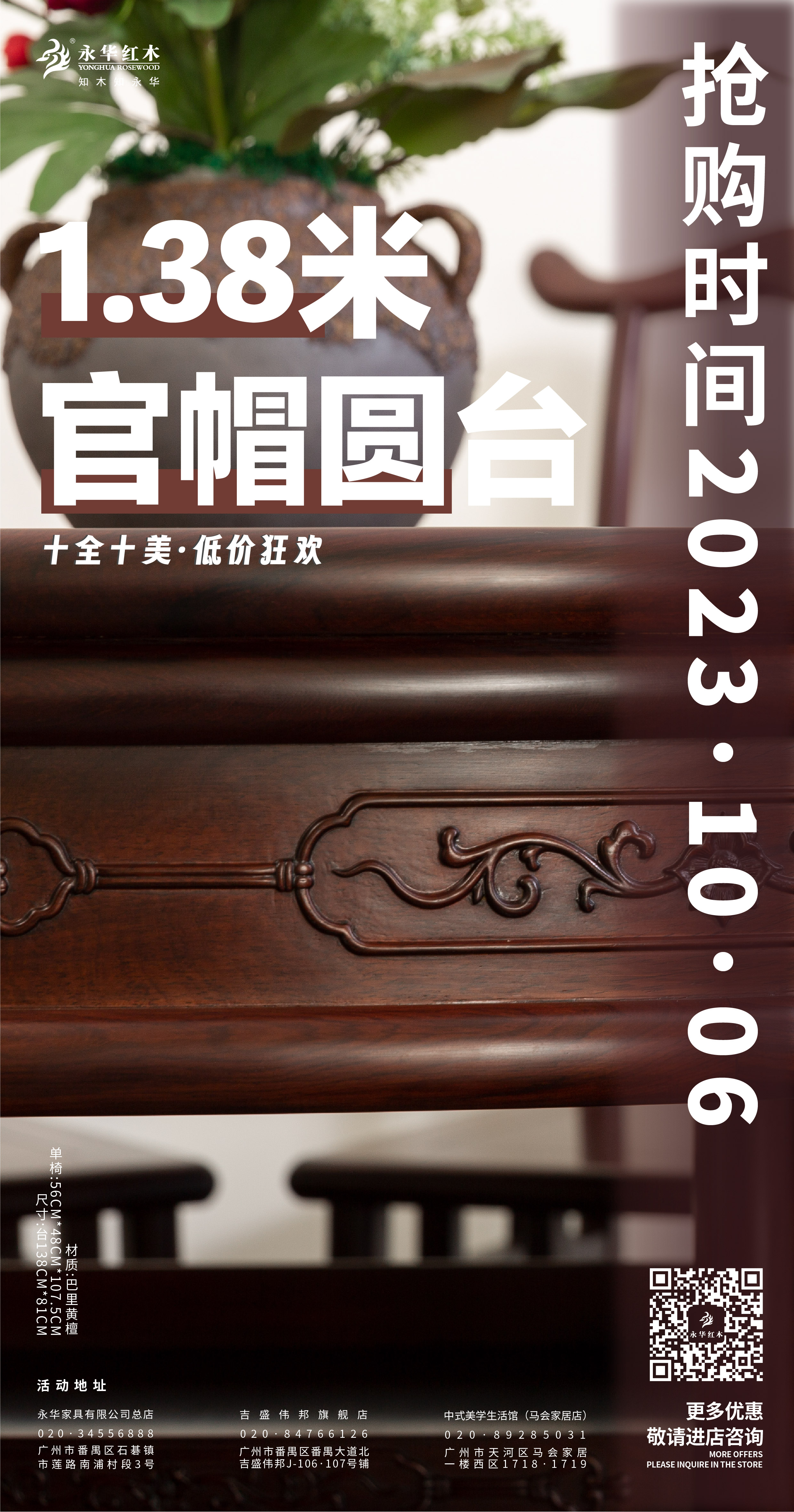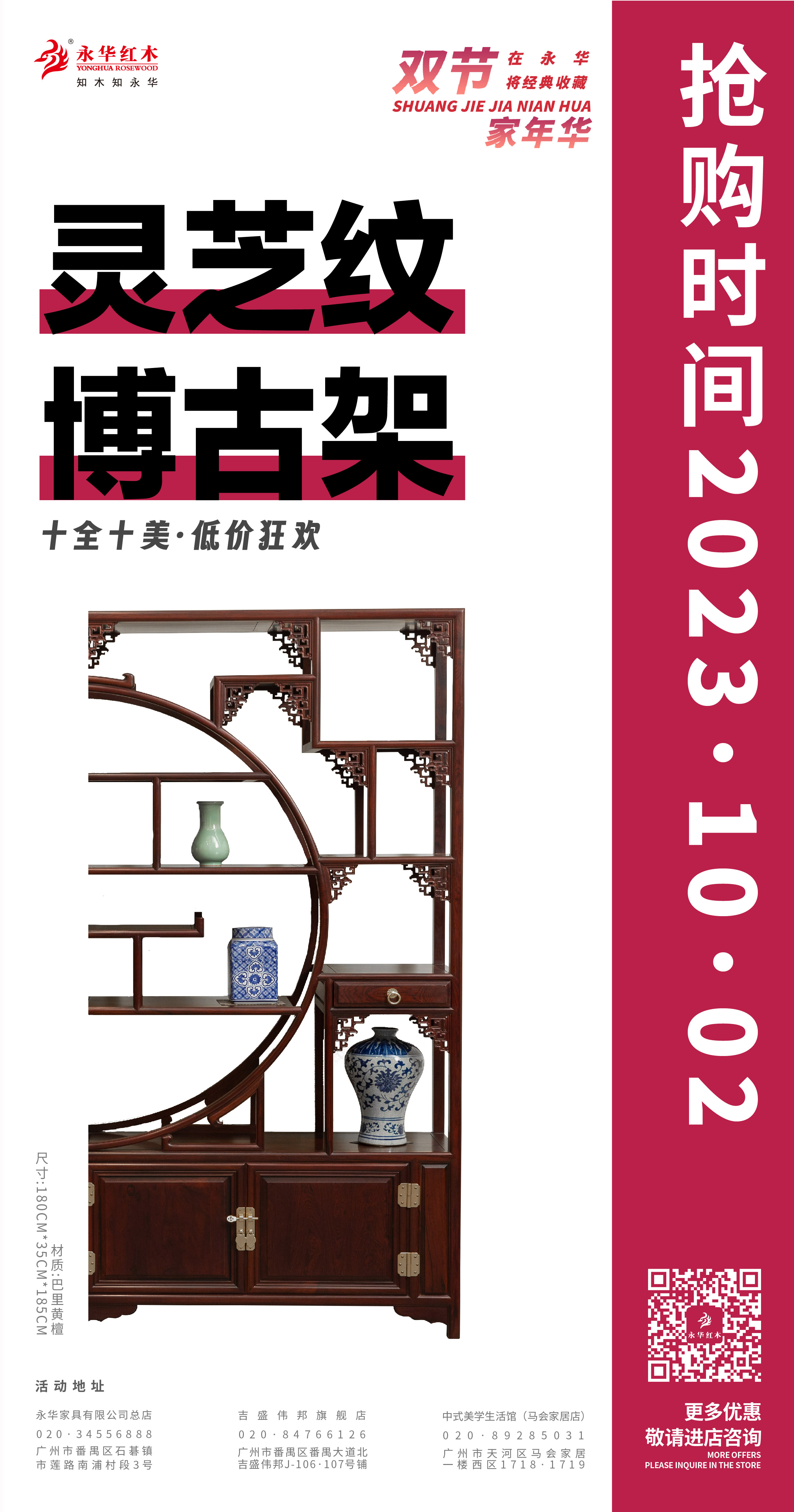 活动期间,永华家具及子品牌名广作每日各推出一款限时好价产品,总共二十件/套中式家具,涵盖入户、客厅、餐厅、卧室、书房、茶室等生活空间家具。