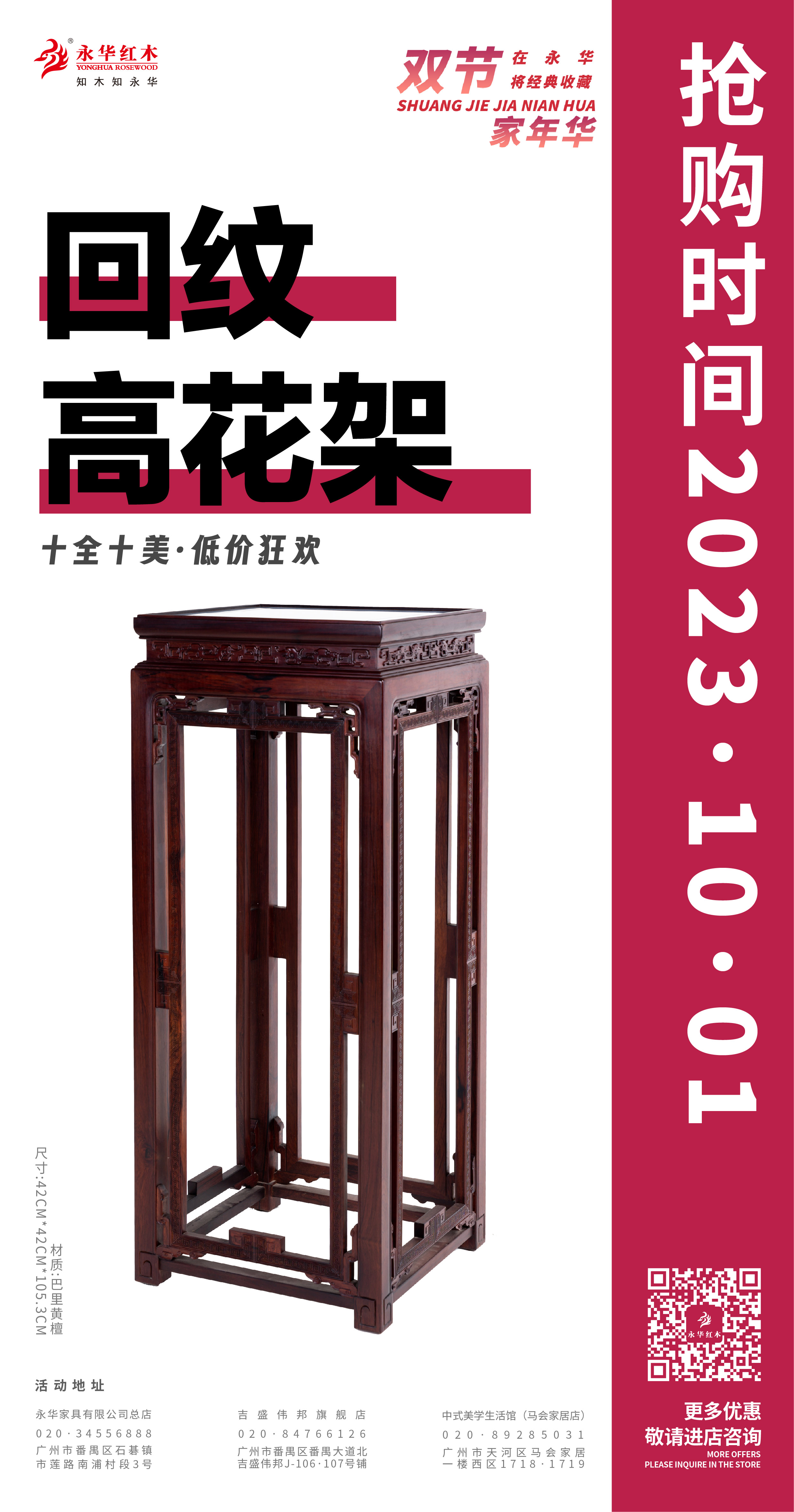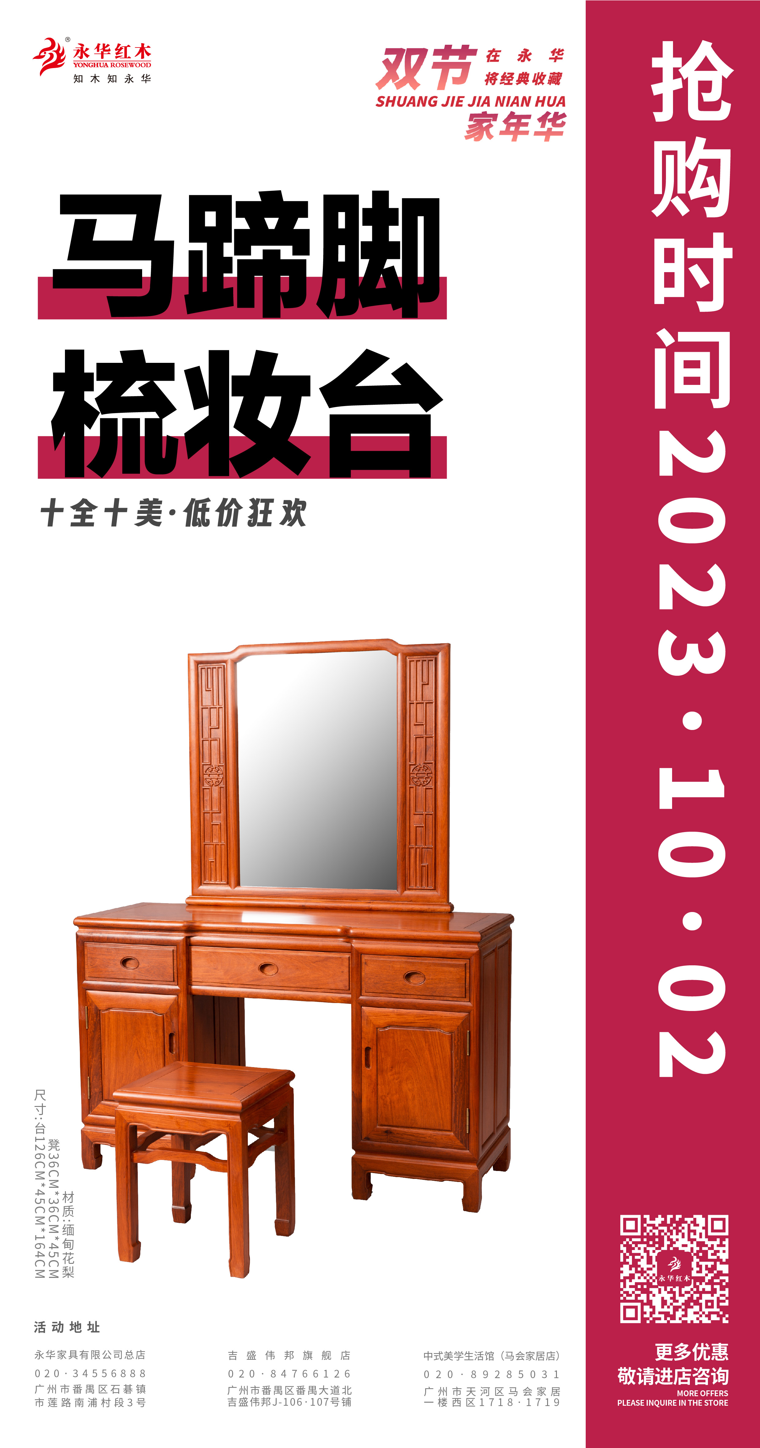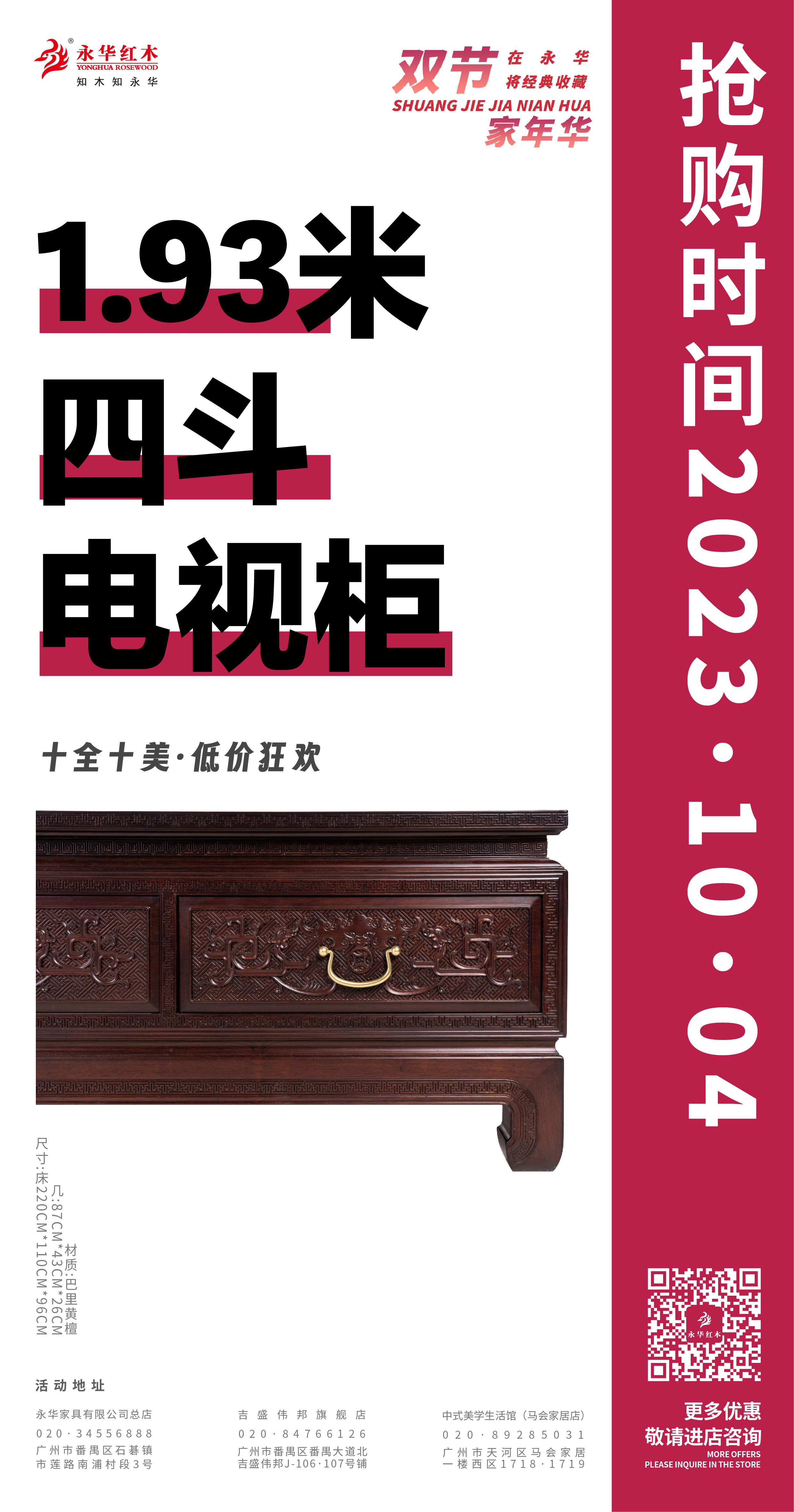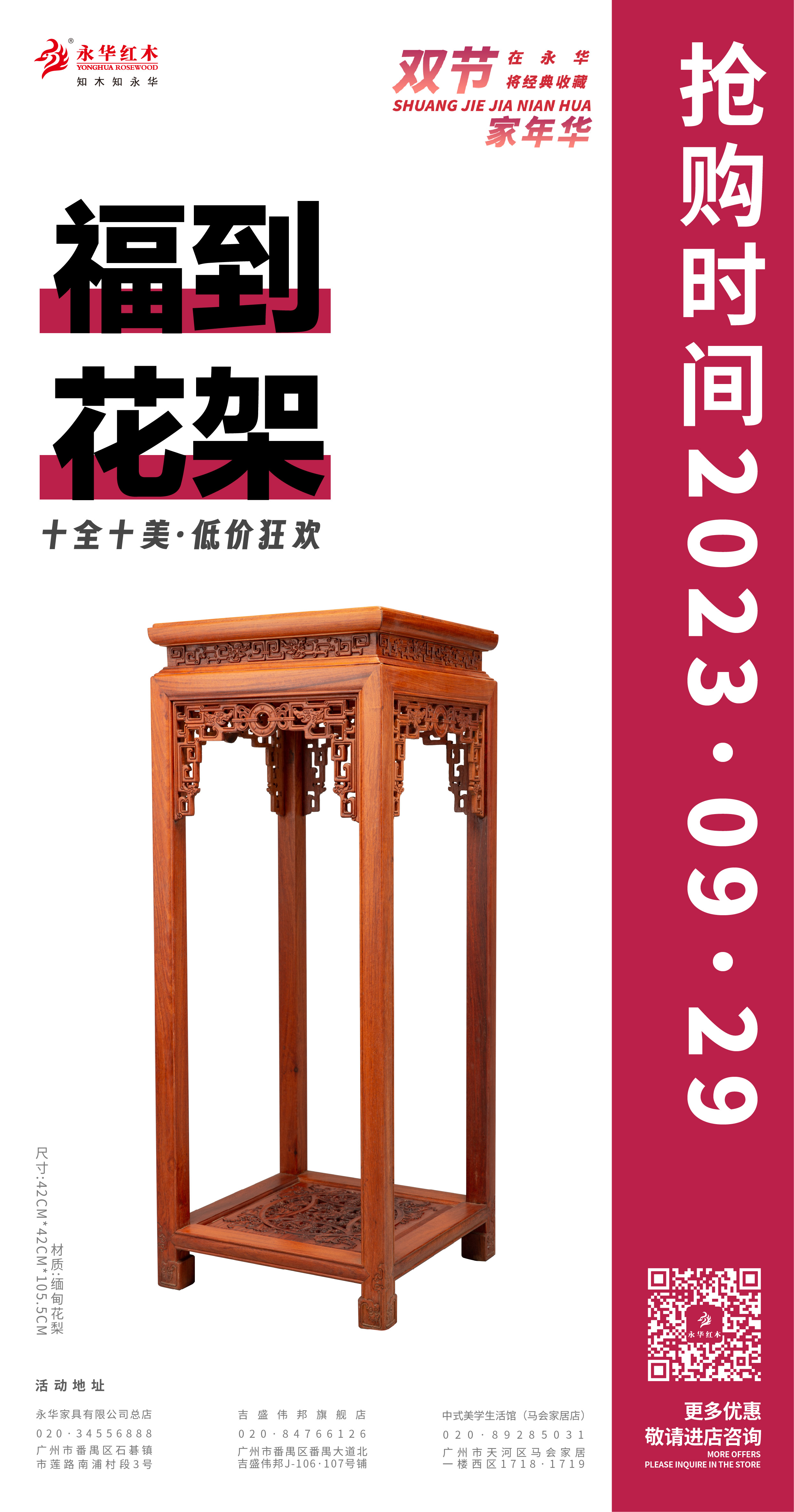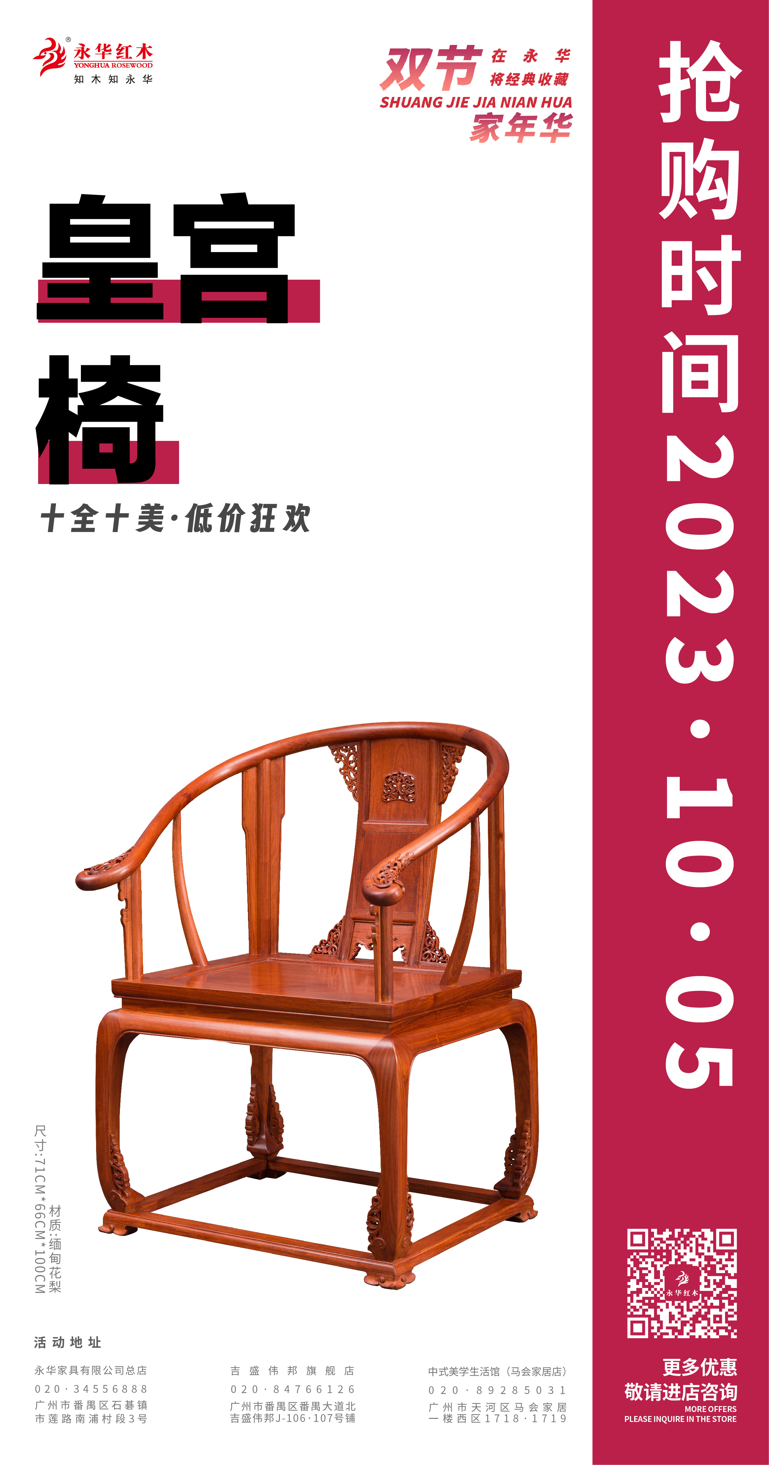 活动期间,永华家具及子品牌名广作每日各推出一款限时好价产品,总共二十件/套中式家具,涵盖入户、客厅、餐厅、卧室、书房、茶室等生活空间家具。