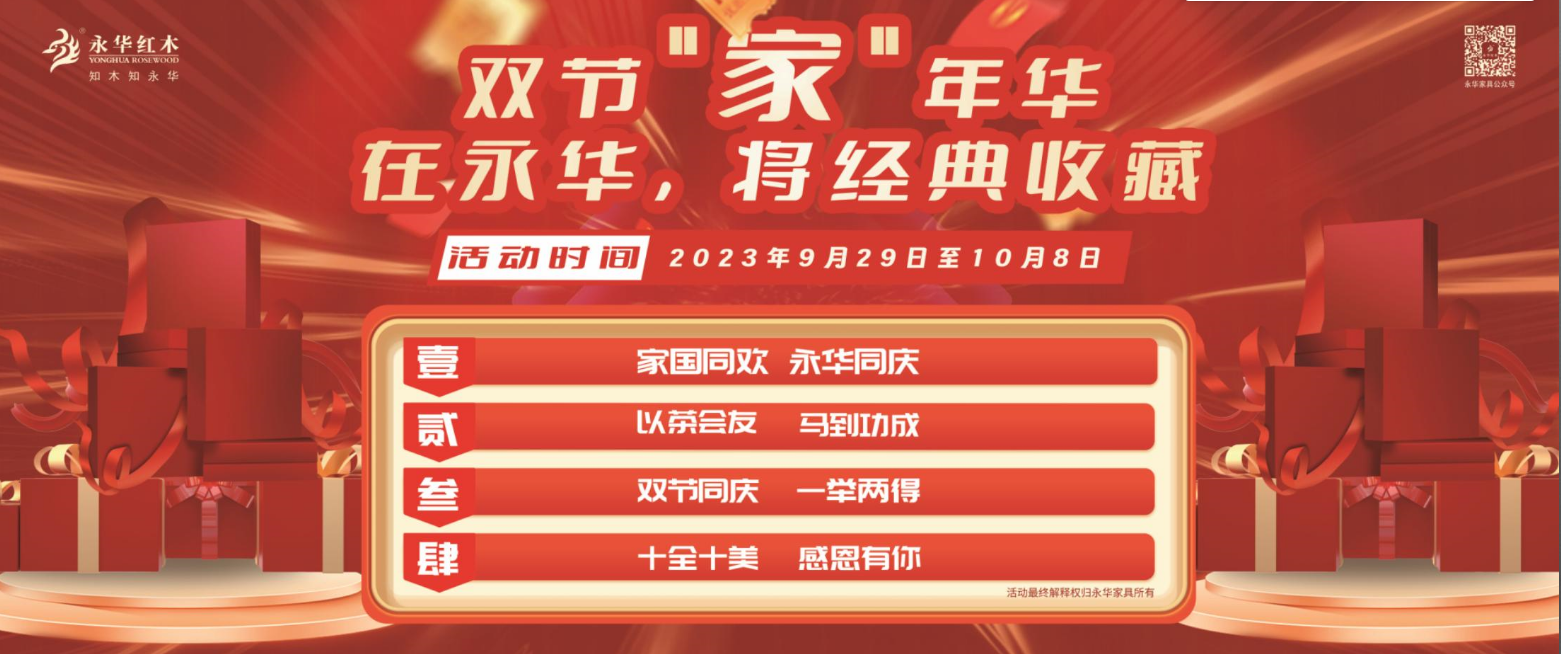 在这金灿灿的季节,值中秋与国庆双节之际,永华家具准备了多个优惠活动,以中国家具设计影响当代生活,让你我感受秋日胜春朝的欢悦。